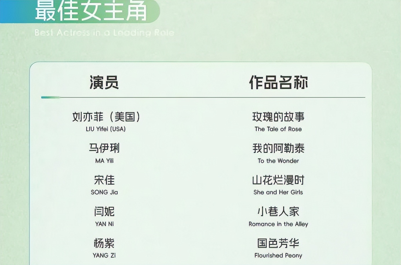 劉亦菲、楊紫的情況跟張若昀差不多,屬於提名即肯定。固然,《玫瑰的故事》但凡換個人來演就壓根不成立,楊紫也為《國色芳華》增色不少,但問題的關鍵是,這年的對手太強了。