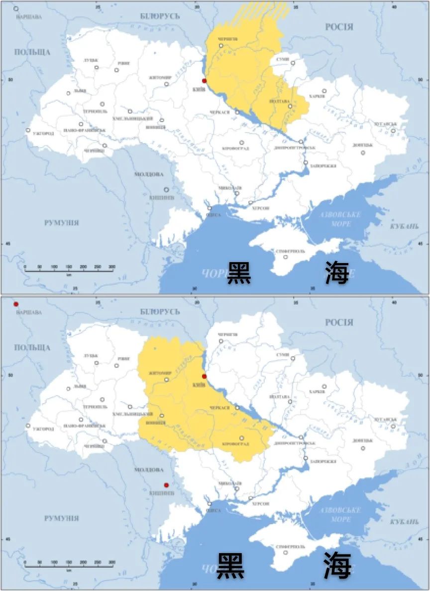 ▲左岸烏克蘭(上圖)與右岸烏克蘭(下圖)