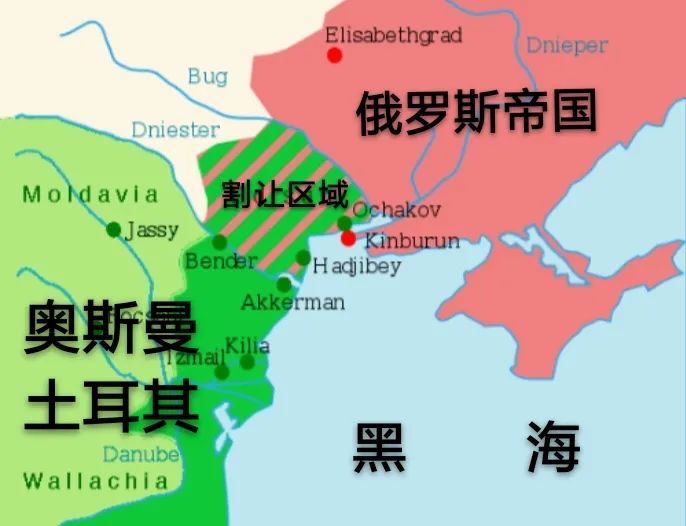 ▲《雅西條約》規定的奧斯曼帝國割讓區