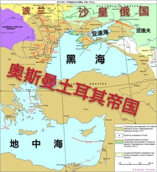 1676-1739年間爆發的四次俄土戰爭兩國互有勝負,俄國在波羅的海急速擴張勢力,但在黑海卻始終無法取得實質性進展。好不容易控制的亞速夫依然處於奧斯曼帝國的重重封鎖之下。形成這種局面的原因就是此時的俄國國力正處於上升發展期,還無法對奧斯曼帝國形成壓頂之勢,但這種情況必定會隨着俄土兩國國力的此消彼長髮生根本性轉變。