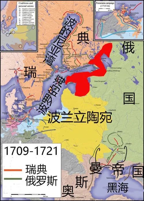 ▲俄國在大北方戰爭中取得的領土(紅色區域)