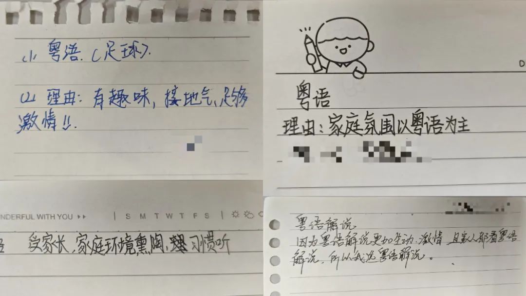 但最令期待“粵語重生”的人士驚喜的是,更多孩子簡單明瞭地用“母語”“親切”來表達喜歡粵語解説的原因——這些孩子顯然仍然身處於一個高強度的粵語輸出場景之中。