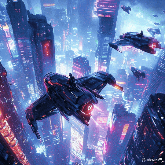 可靈1.6高品質模式下,畫面的視覺效果和一致性都比較好,但是有一點:畫面裏並沒有出現飛行器快速穿梭,鏡頭跟隨的場景: