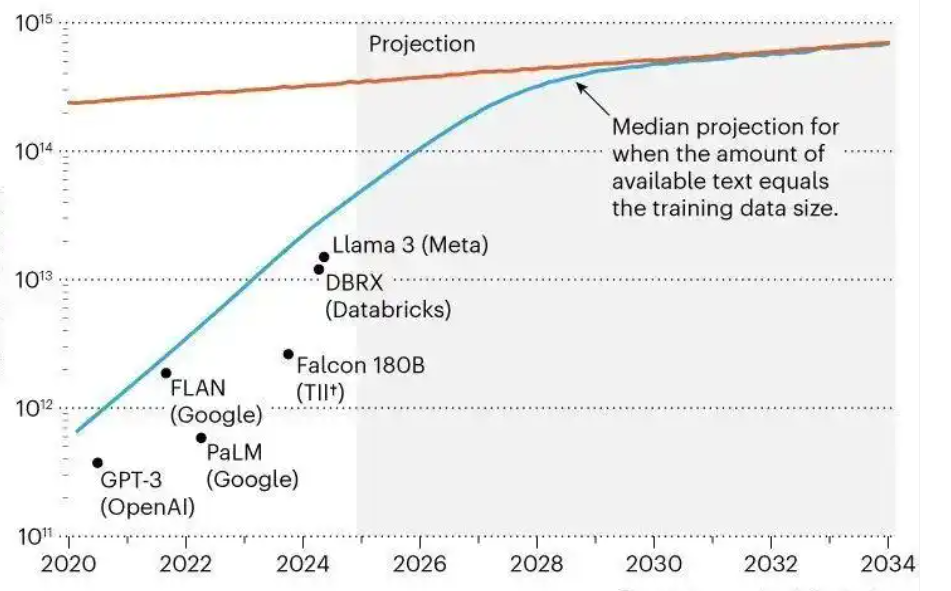 Pablo Villalobos的論文估計,訓練大模型的數據將於2028年耗盡