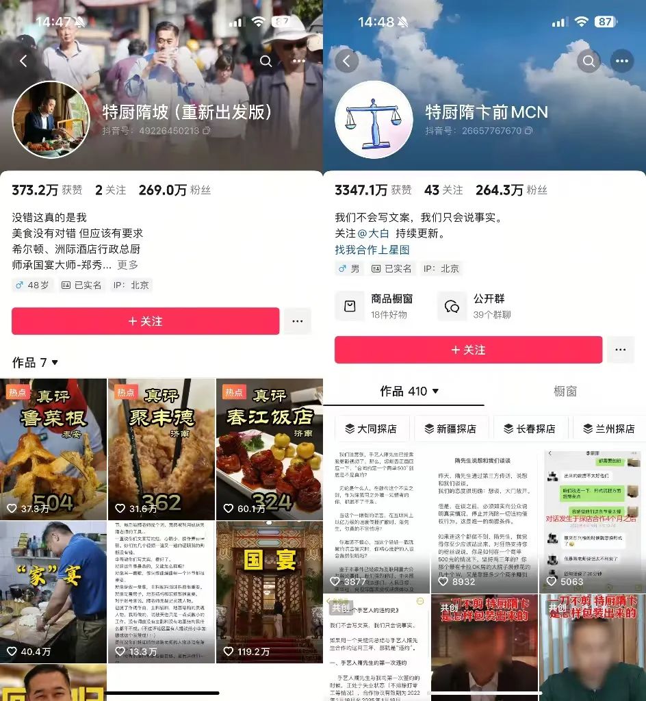 與“浪胃仙”類似,特級廚師隋坡與其原MCN機構的矛盾近期也持續發酵。隋坡自2022年通過“@特廚隋卞”賬號走紅,憑藉專業烹飪和豐富酒店經驗吸引了數百萬粉絲。