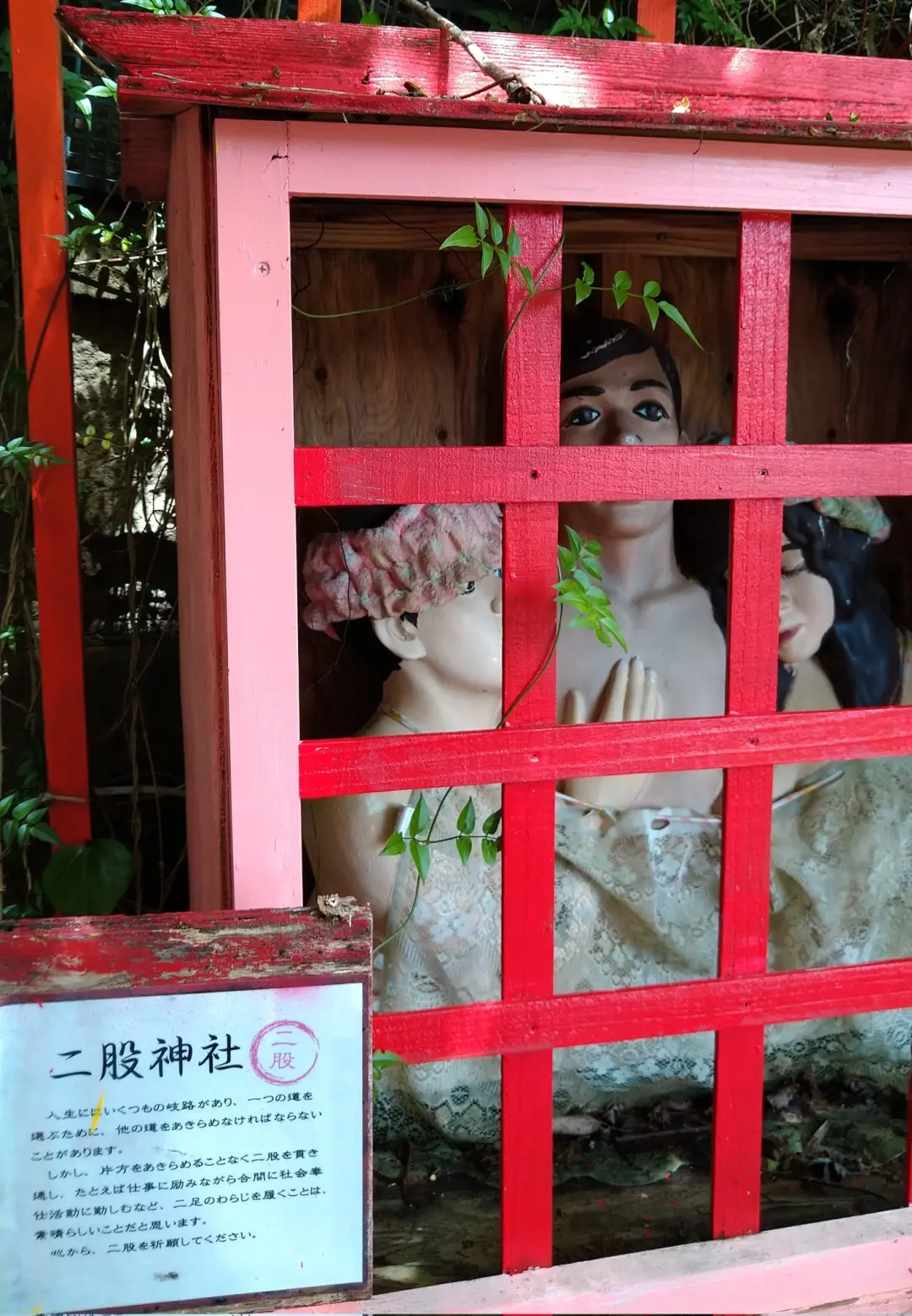 還有一座最神的二股神社,二股的意思即腳踏兩條船,裏頭供奉一男的摟着兩女的。
