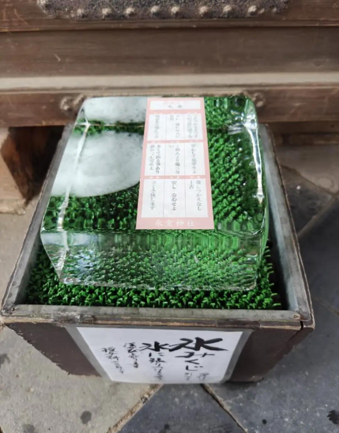 這座神社的求籤過程也與眾不同,要把籤文放在一個大冰塊上才會顯出來。