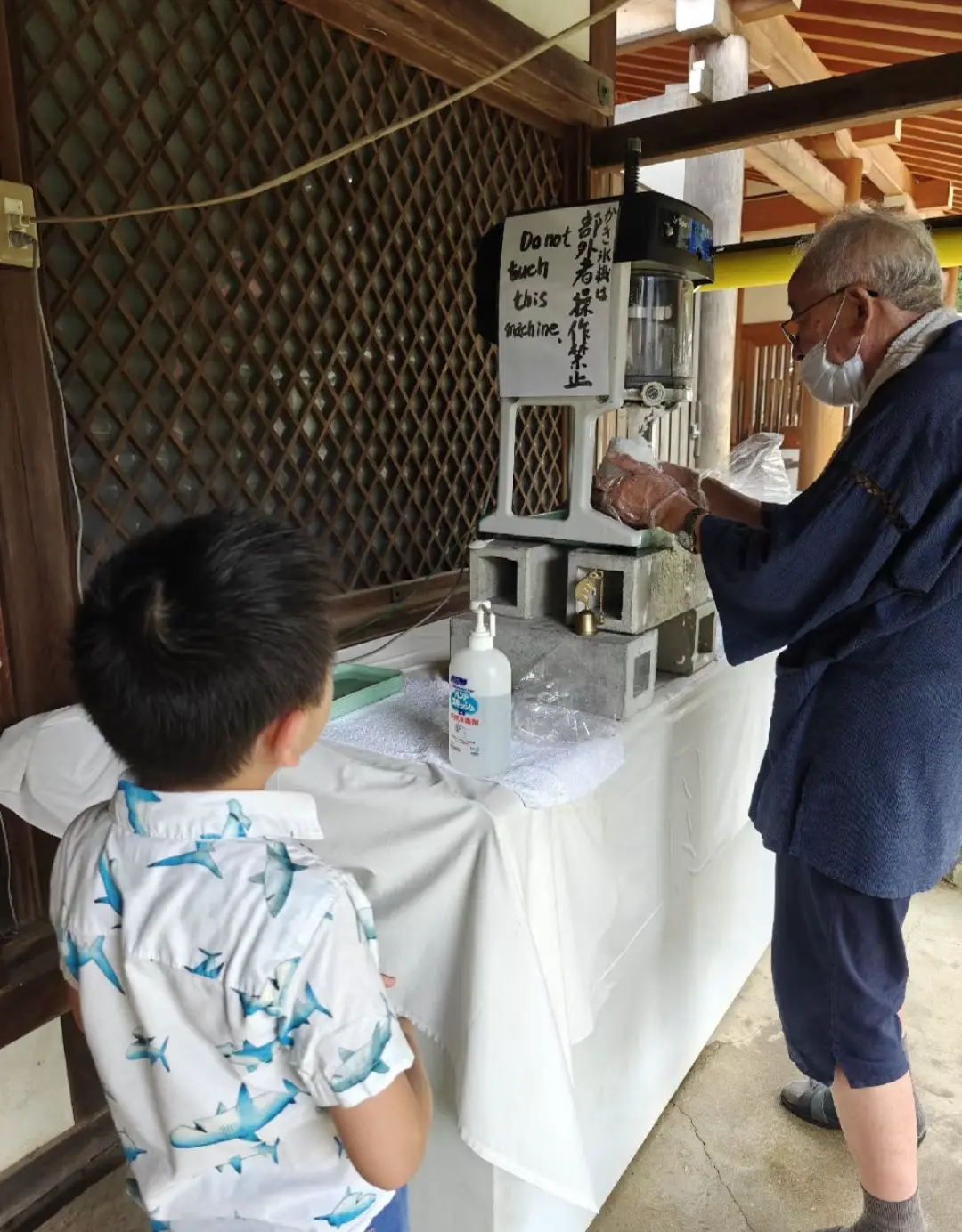 有個外國人跟守冰室神社的老爺爺説要買一碗刨冰,直接被老爺爺教育了一番,神聖的刨冰怎麼能用“買”呢?