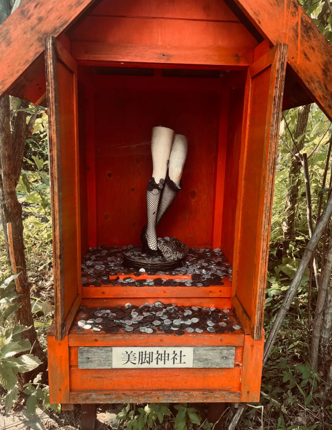 美腳神社的陳列彰顯着一股大道至簡的氣質,只呈現一雙穿着黑色網襪的腳,其他的修飾彷彿都略顯多餘。