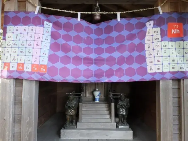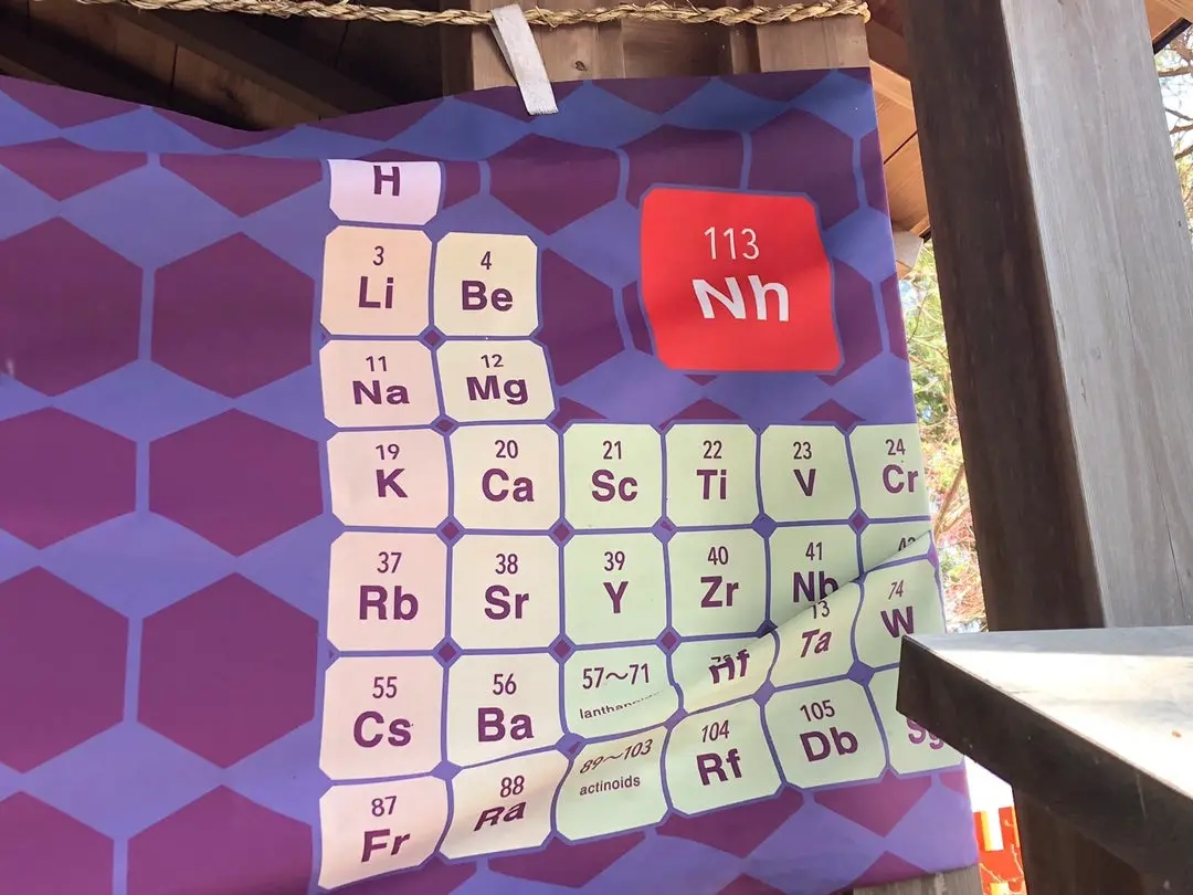 比如當你走進位於梔木縣真罔市大前惠比壽神社裏看到掛着的元素週期表。