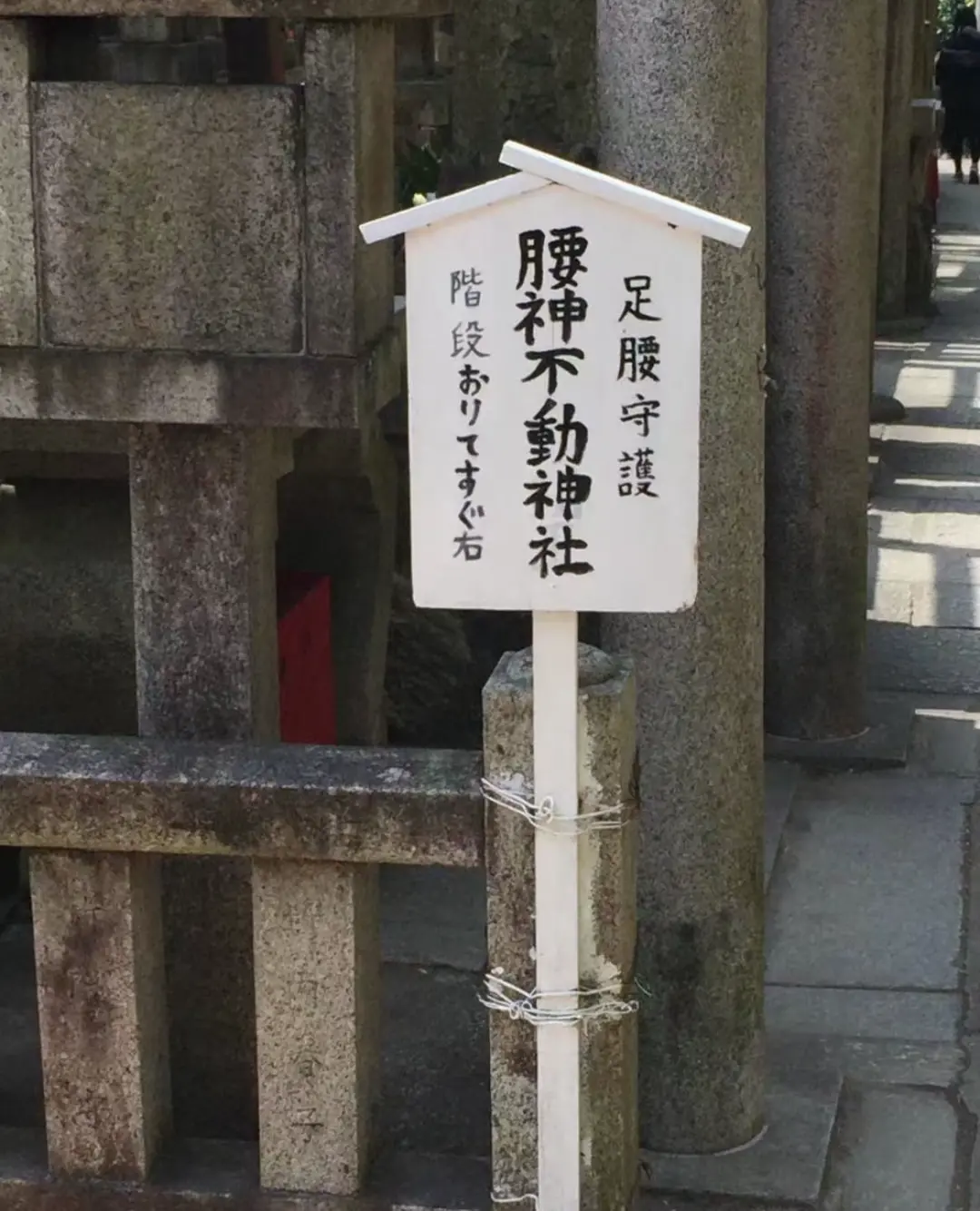 一位台灣遊客在他的旅遊攻略裏寫到,在日本走累了,除了貼藥膏去足療店,還可以去找足腰神社拜一拜,腰痠背痛馬上就恢復。