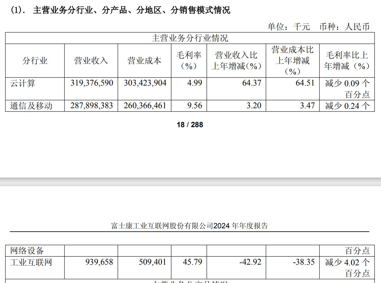 對此,工業富聯2024年財報數據顯示,其2024年主營業務毛利率均出現不同程度的下滑。疊加其與英偉達業務的深度綁定關係帶來的直接和間接影響,代工廠在整個芯片和服務器生態中的地位會更加尷尬。