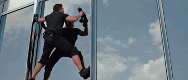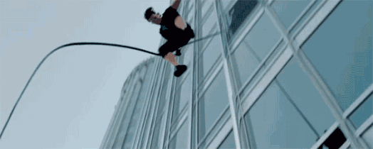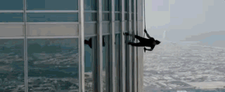 《碟4》,他在523米高的迪拜哈利法塔外牆攀爬,破窗而出。