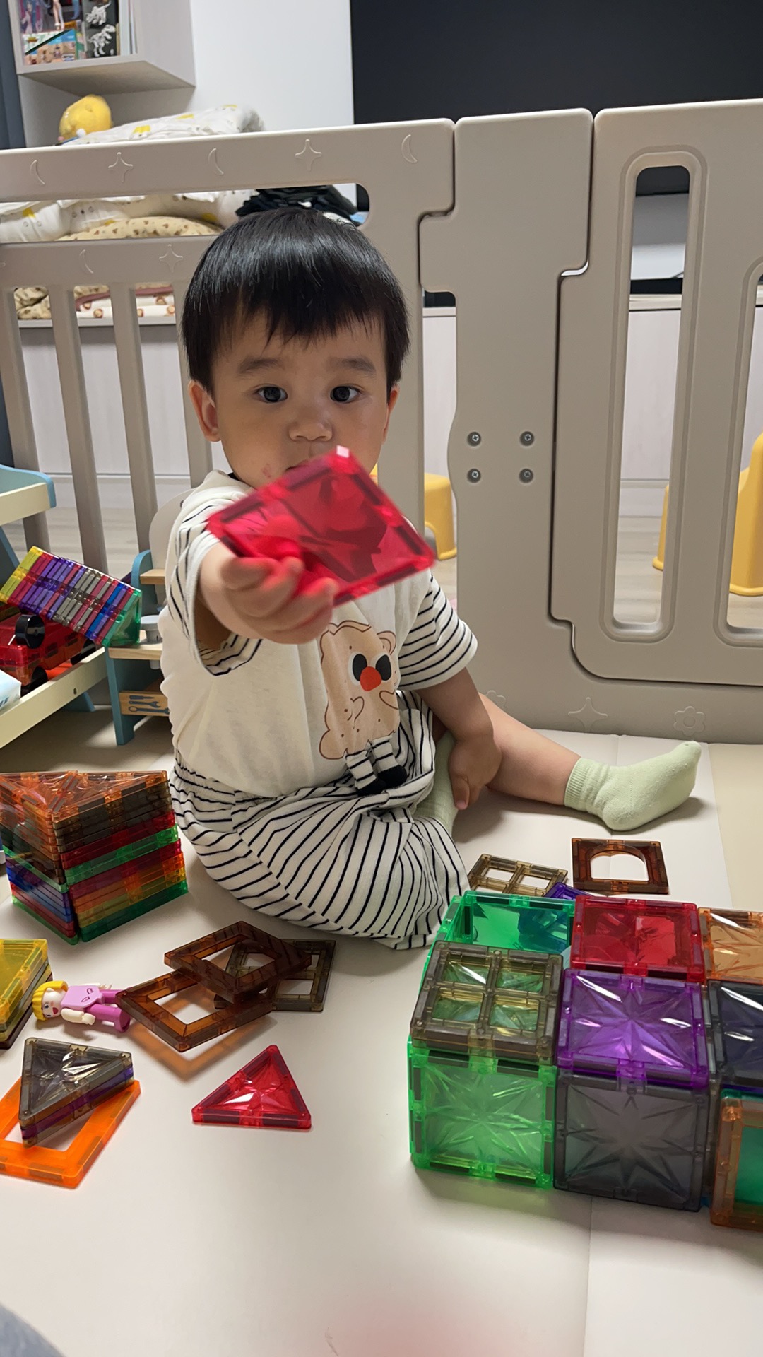 最後,再來個適合陪着孩子一起玩的玩具,那就是磁力片。磁力片這玩意有以下幾個好處:耐造、不怕吃、容易收拾、可玩性高等優點。尤其容易收拾這個優點,真就是當了爹媽才知道有多重要。磁力片的話得注意下兼容性問題,如果多品牌買的話最好能確保相互兼容能一起拼搭一起玩,不然就會很蛋疼。夫人買的時候就特別注意了這個問題,使得家裏磁力片規模極大。不過隨着他年齡變大對磁力片沒興趣,也逐漸清退磁力片了。