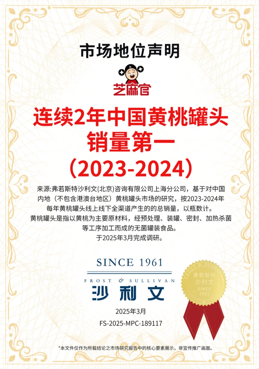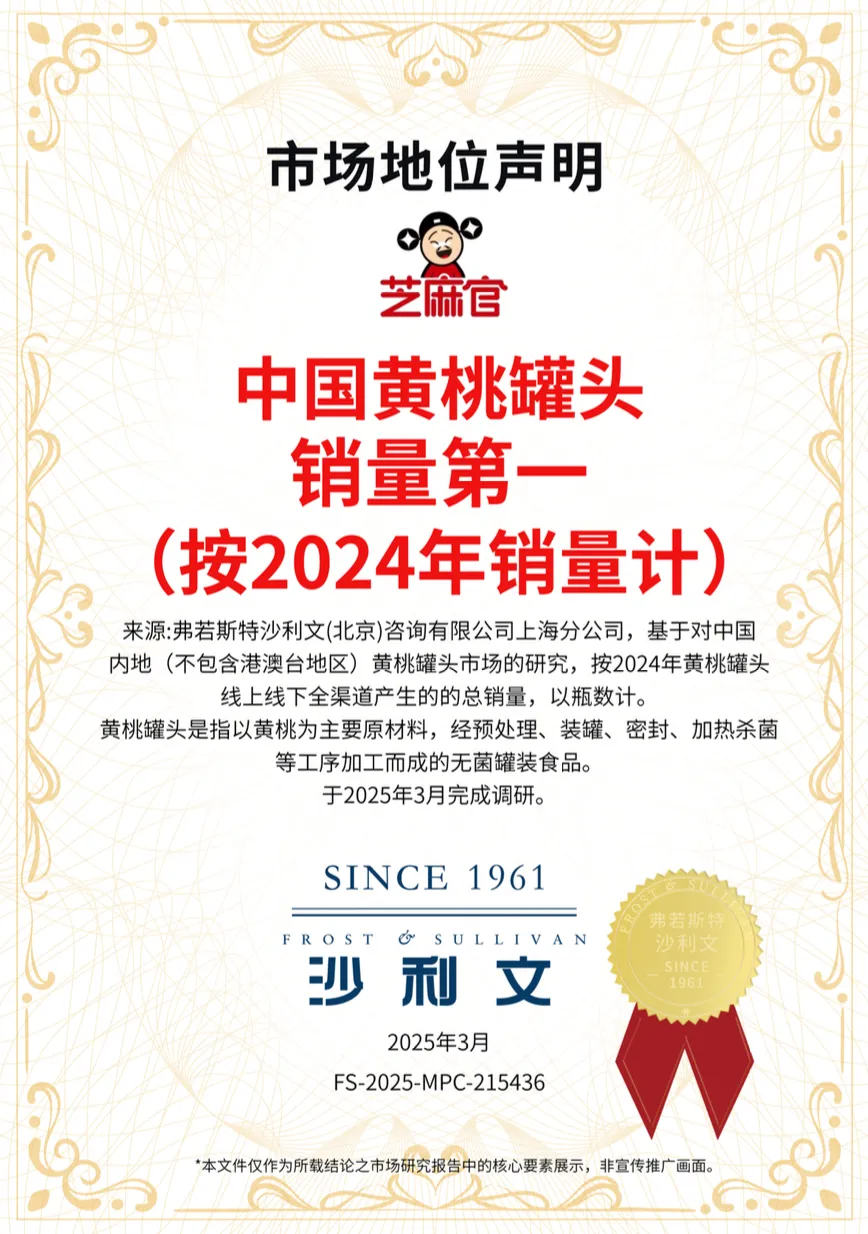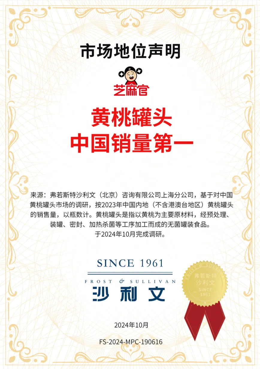 連續兩年登頂黃桃罐頭銷量榜首的民選之光——芝麻官,給出了自己的答案。