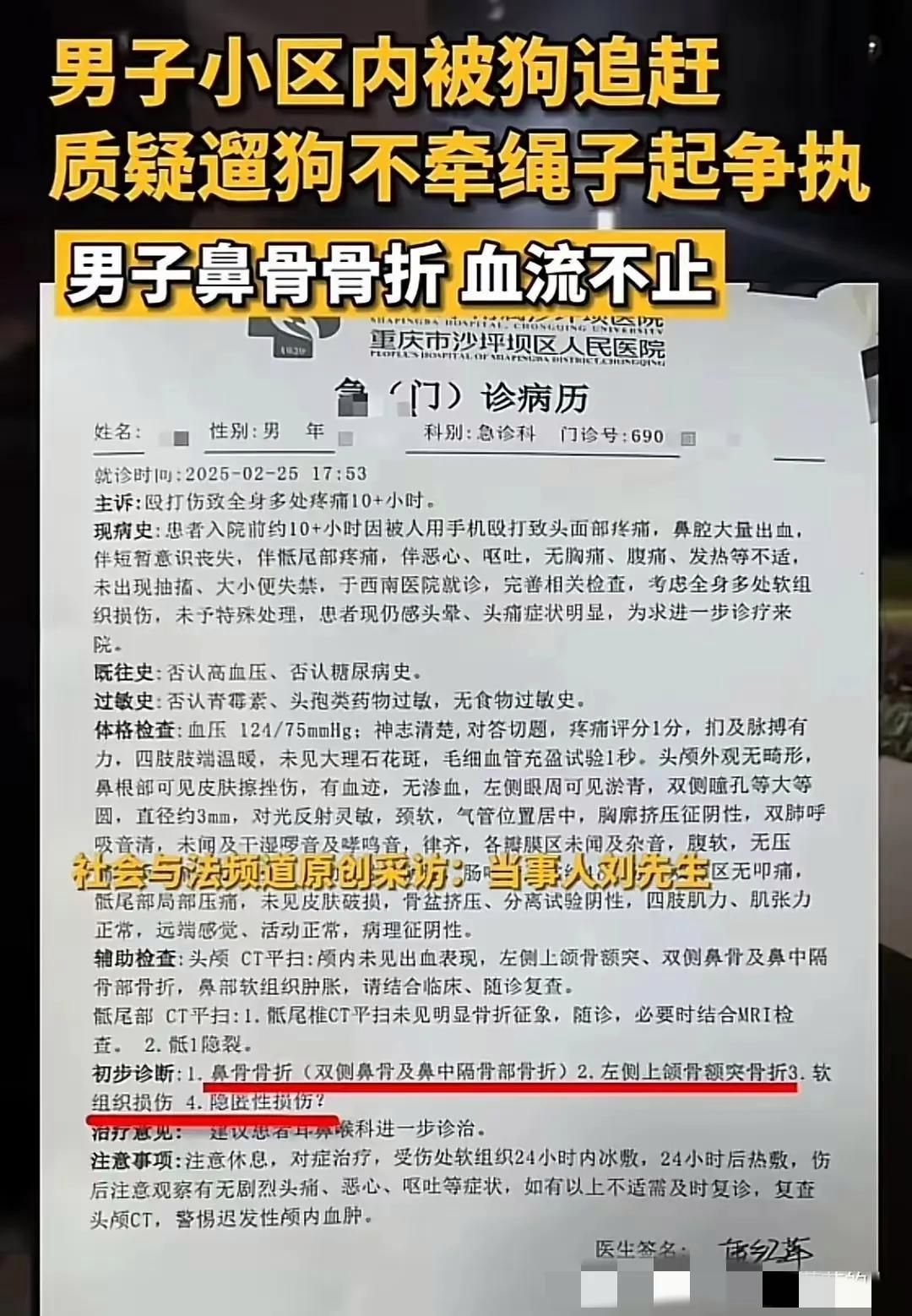 重慶男子被遛狗女打至二級傷_風聞