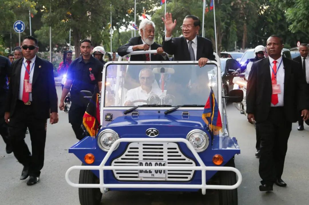 東帝汶總統奧爾塔為洪森開車,總理古斯芒站在洪森身邊。