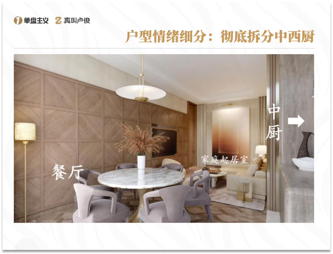 這個研發語言就是在告訴受眾,客廳+西廚用來對外社交