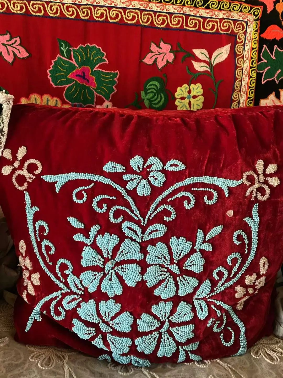 珠子繡是將各種各樣的珠子串在一起,然後縫製在面料上,多用於生活用品。