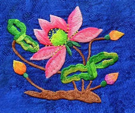 錫伯族刺繡技法以具有悠久歷史的挑花為主,分為大針和小針,還有滾針法、平針法等種種技法。