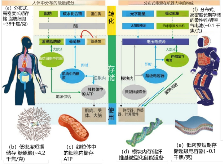 人體內和人形機器人的分佈式能源架構對比圖。來源:wiley.com