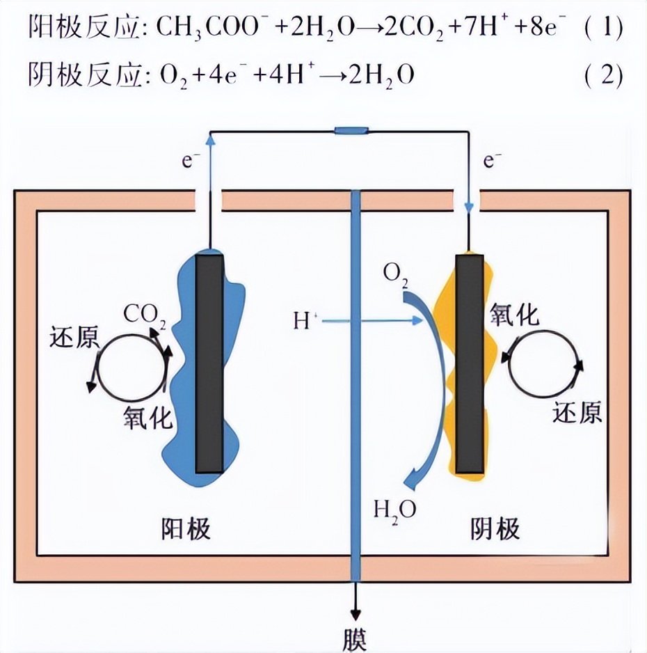 在微生物燃料電池中,微生物在陽極厭氧分解有機物產生電子,電子通過外部電路傳遞至陰極,質子通過溶液或膜遷移,與電子在陰極區結合氧氣生成水,完成電路並釋放電能。這意味着機器人未來或許真的能夠“靠吃飯”充電!