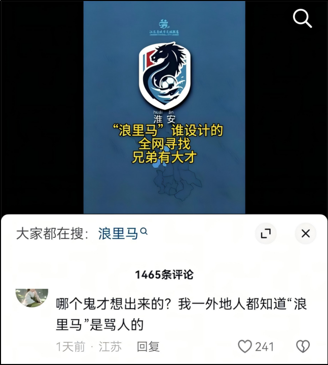 因為淮安在明清時期是南北交通樞紐、水陸襟喉要地,被稱為“南船北馬”之地。所以隊徽裏有馬有水,才體現出淮安特色。
