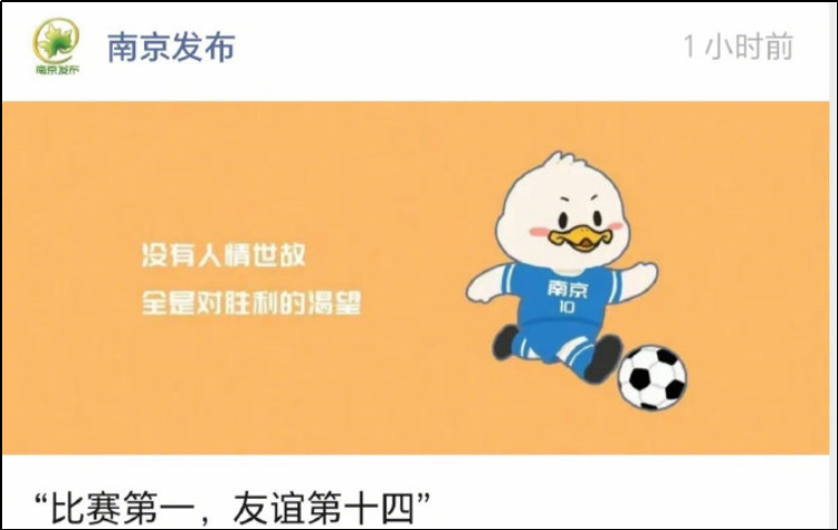 5月28日南京發佈在公眾號上發佈文章,説:“比賽第一,友誼第十四” ,從標題開始到正文都在表達一個意思: