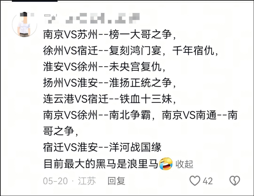 地圖炮在形成同時,也在消解,這是散裝江蘇下蘇超的另一個神奇之處。