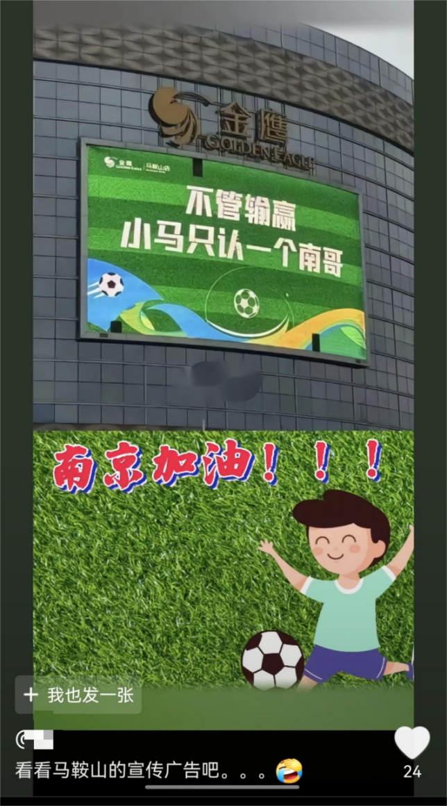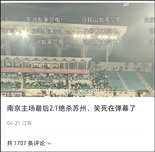 南京2比1絕殺蘇州後,彈幕裏都是安徽各城市網友的賀電。