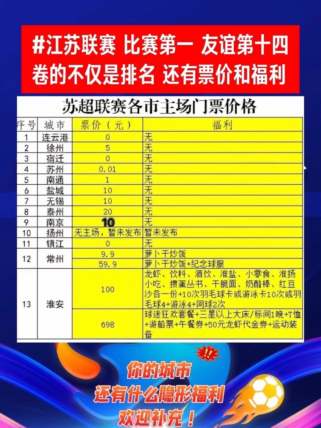蘇超的票非常便宜,一開始好幾個球隊的比賽不需要門票錢。