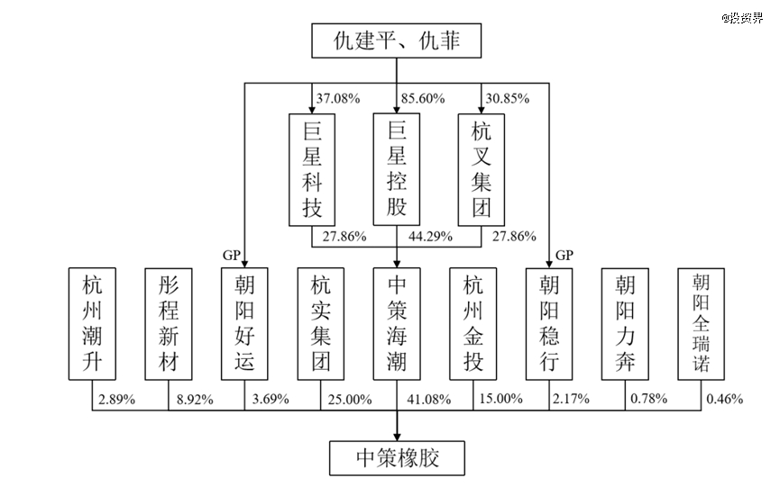 值得一提的是,中策橡膠背後浮現一位併購大佬。本次IPO前,公司實際人為仇建平、仇菲父女,合計控制46.95%股份。而杭州國資旗下杭實集團及杭州金投分別持股25%、15%。