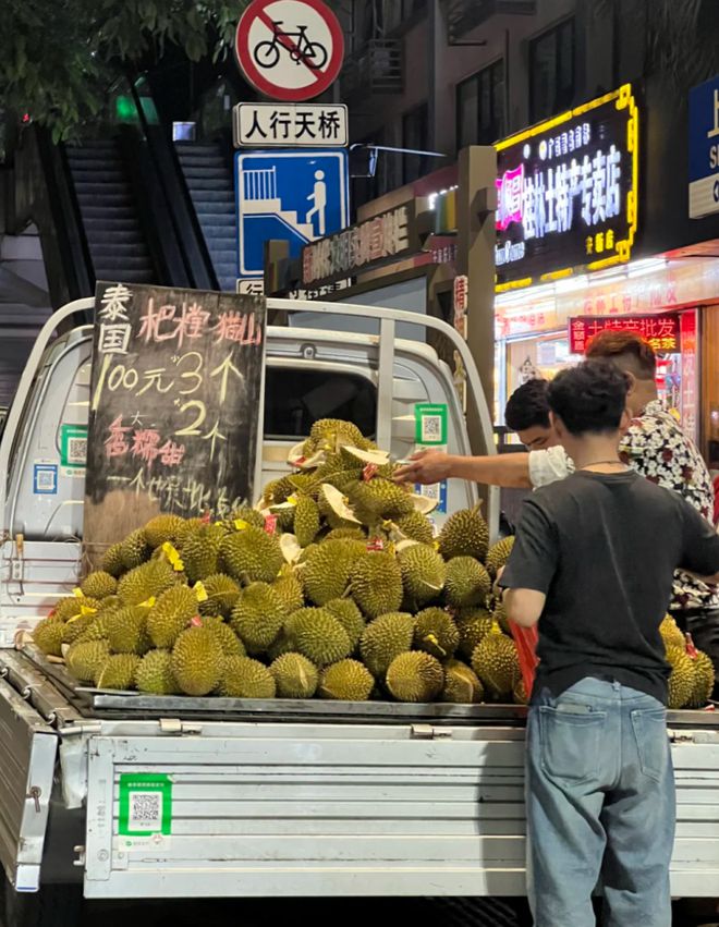 在她生活的城市裏,海鮮和熱帶水果在時令季節金貴,到了反季就堪比金價。城市裏能買到性價比榴蓮的,只有路邊大卡車賣榴蓮式的典型騙局,連小時達裏賣的金枕榴蓮都只有“液氨鎖鮮速凍版”榴蓮肉,哪怕的出售整果的商家也會清晰標註“無售後”。