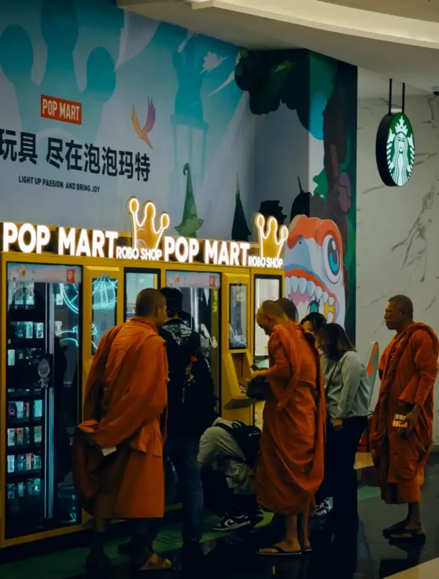 泰國高僧也要聚在售賣機面前,試試自己平時的修為能不能助自己抽到隱藏款。