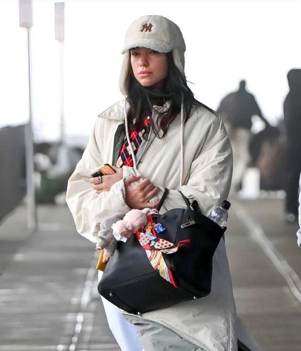 ●當紅女歌手“啪姐”Dua Lipa的愛馬仕鉑金包上掛着兩隻拉布布