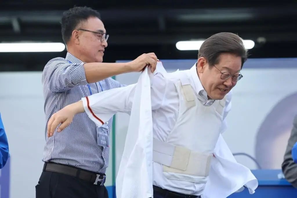 李在明2024年1月2日在釜山參加活動時遇襲。(圖源:韓聯社)