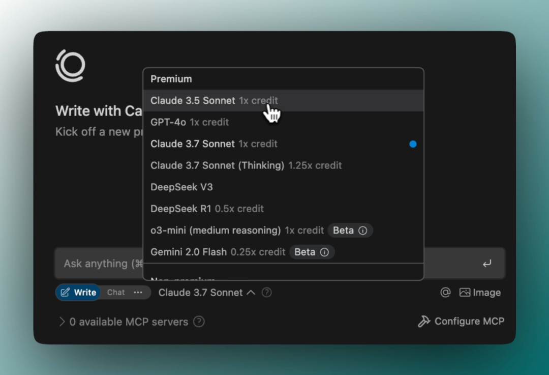 Windsurf 原來可以選擇包括 Claude 在內的多種模型|圖片來源:Windsurf