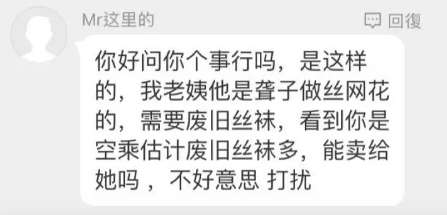 作為乘務員,哪怕工作再苦再累,職業尊嚴是大家都認可的。可就是這幫人,三塊五塊一雙襪子地喊價,千把塊錢收絲襪地釣魚,生生把我們拽到一個最噁心的泥潭裏。