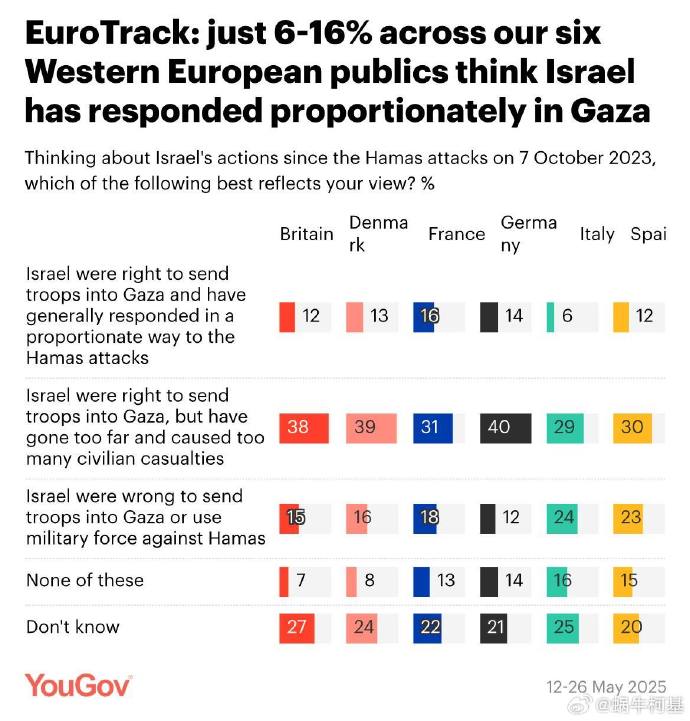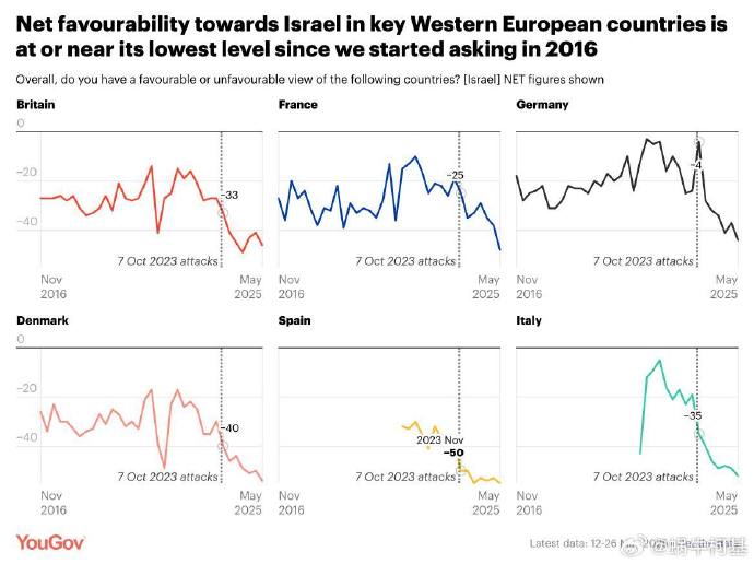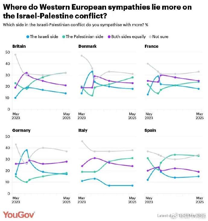 西歐民眾對以色列的支持率創歷史新低,對巴勒斯坦的同情與日俱增。