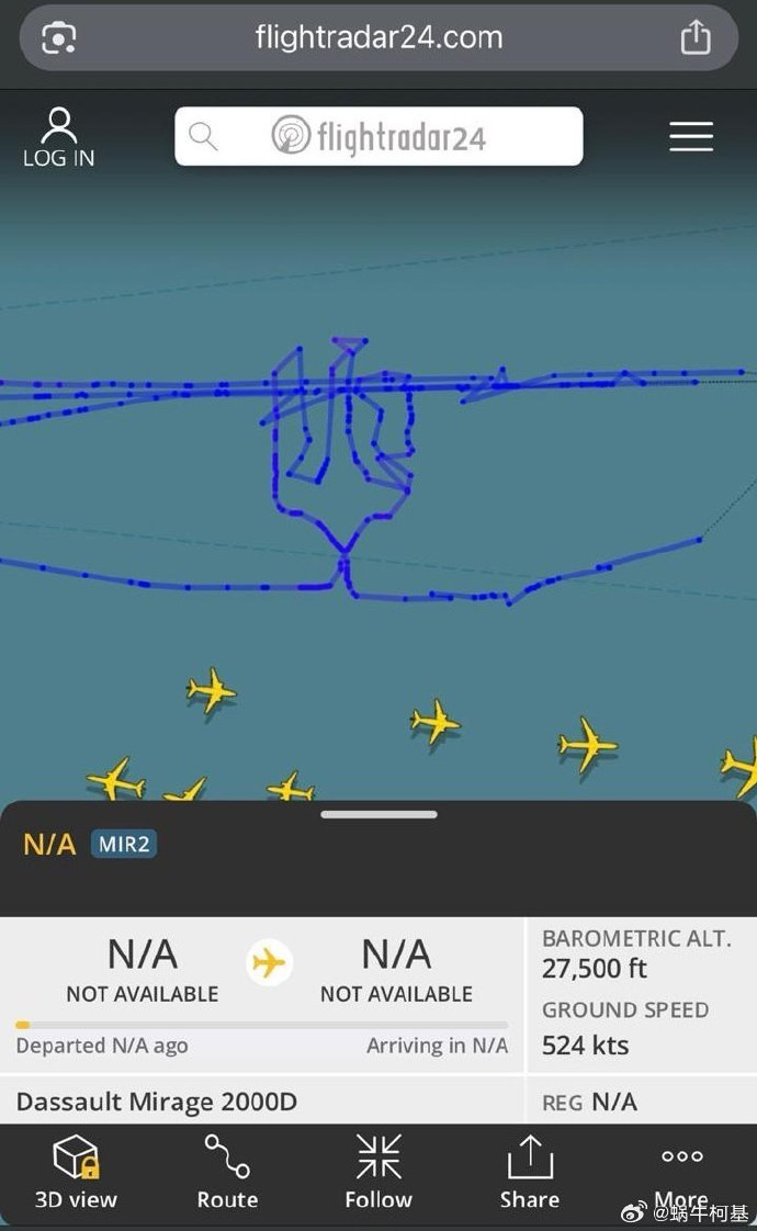 烏克蘭空軍曬出烏克蘭塗裝的幻影2000,併發布其在黑海上空飛行時繪製的三叉戟輪廓圖。