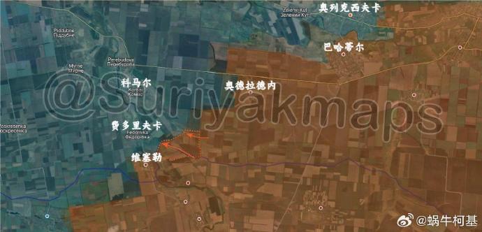 4、紅軍村:俄軍在烏達奇涅和烏斯佩尼夫卡之間取得了新的進展,還在科特利亞里夫卡以北以及博赫達尼夫卡和奧列克西夫卡之間進行了一系列推進。此外,俄軍偵察小組已直抵第聶伯羅彼得羅夫斯克州邊界。