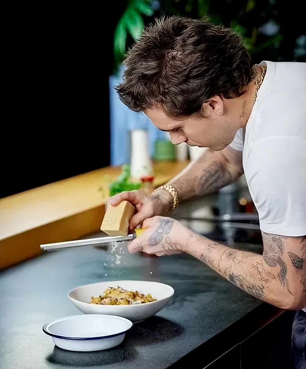 眼看足球圈和時尚圈都混不下去,大布又換了條賽道:做飯。2021年他拍攝了一個美食節目叫《與布魯克林一起烹飪》在流媒體平台上線。在節目里布魯克林每集請一位優秀的大廚煮菜,看着他們為自己把各種食材準備好,然後自己再簡單加工一下。