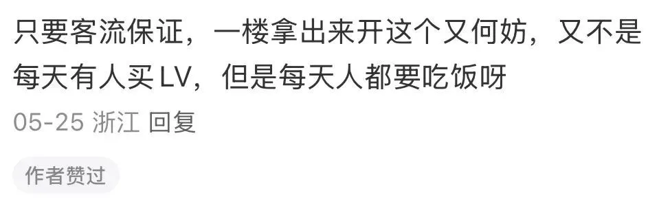 甚至還有人建言獻策“應該把食堂開到一樓LV的位置”,畢竟吃飯才是附近最大基數常駐人口的真剛需。