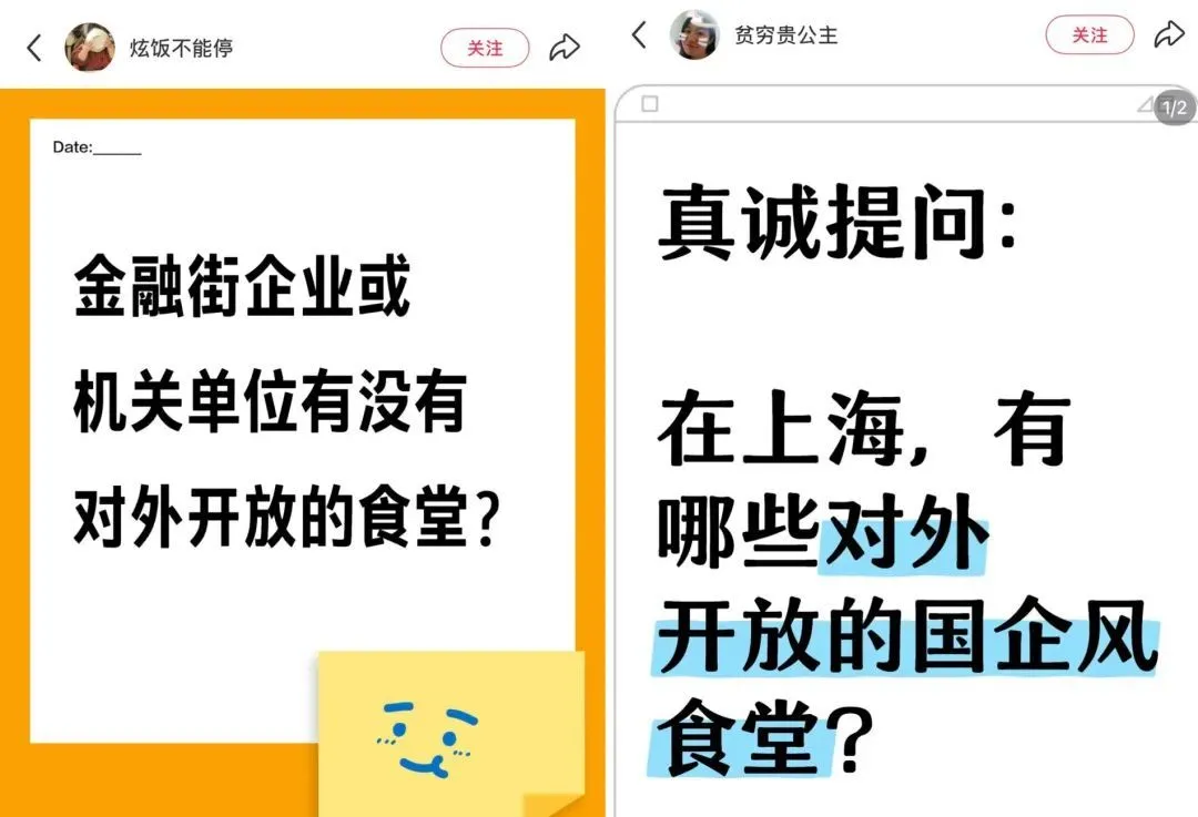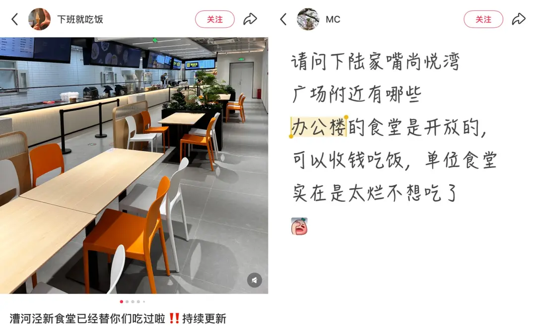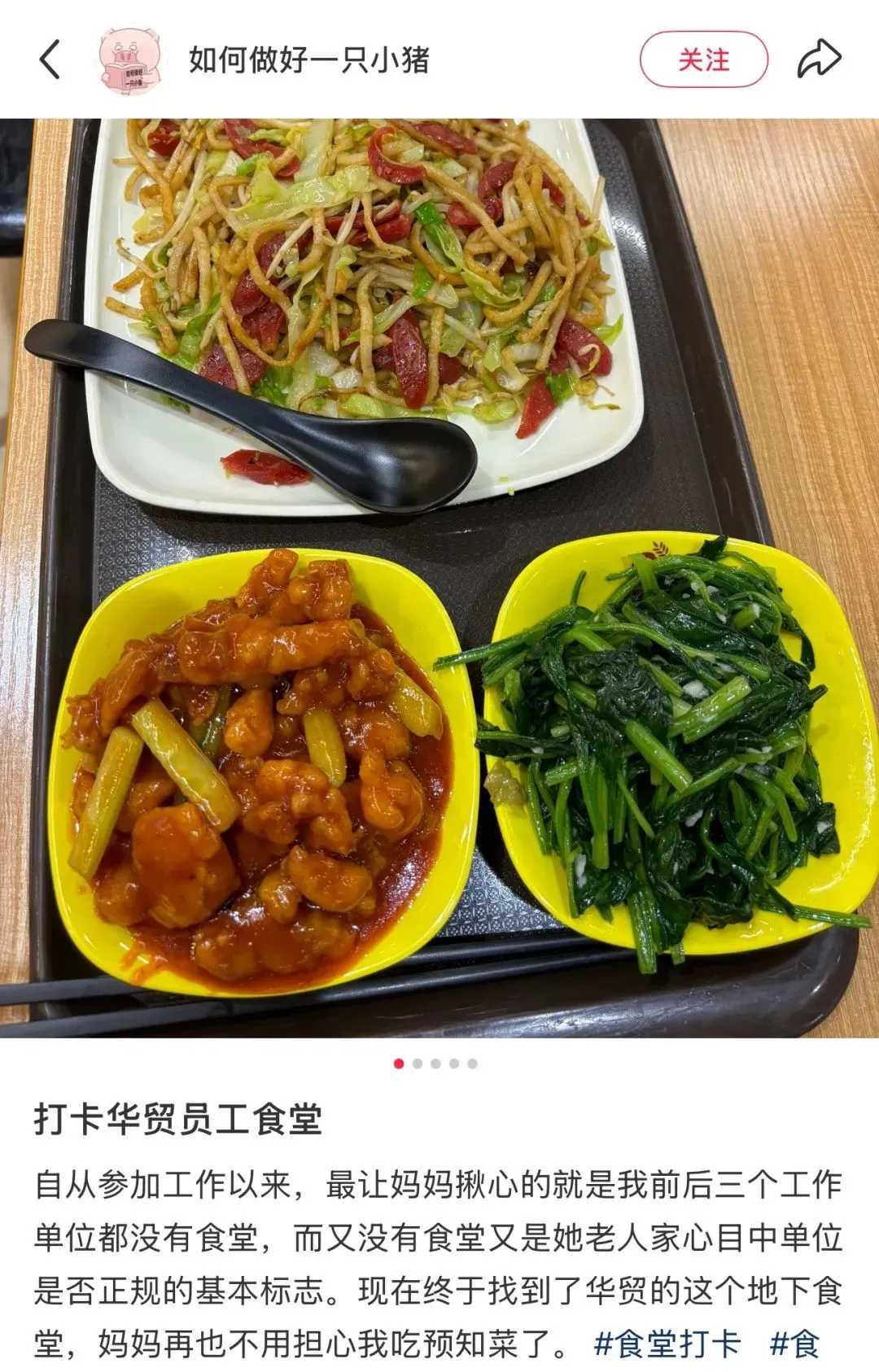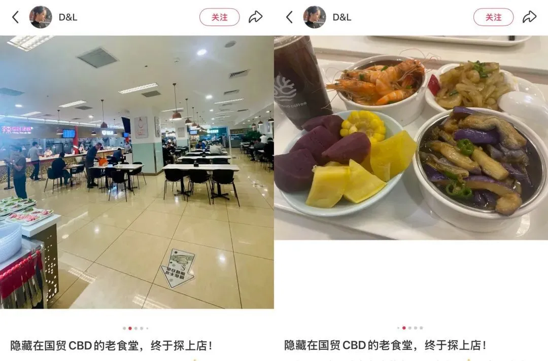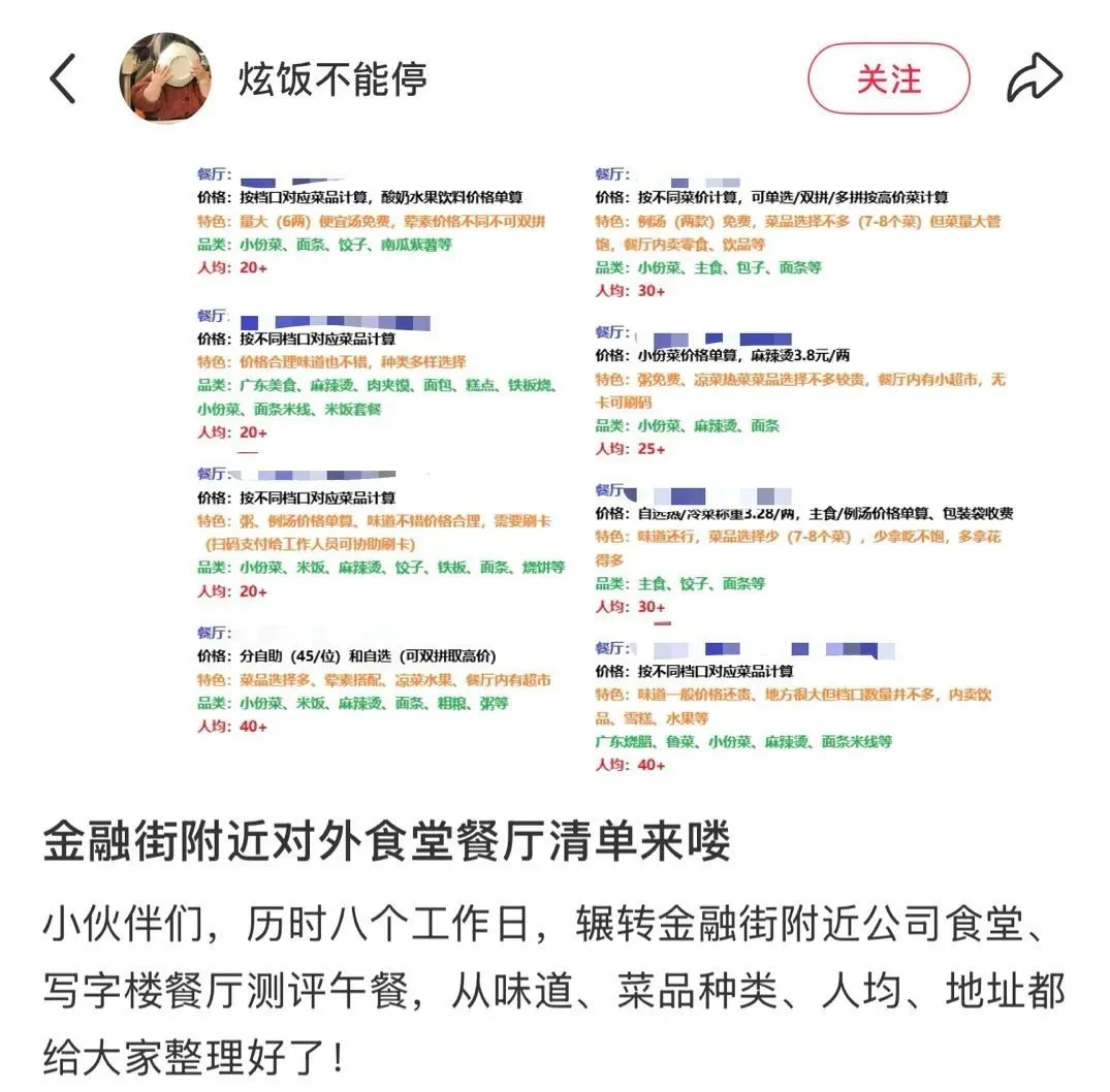 打工人們對於食堂的旺盛需求,甚至催生出了食堂探店賽道的博主,彙總各個商圈可蹭的食堂,我願稱之為真正的小眾寶藏探店↓