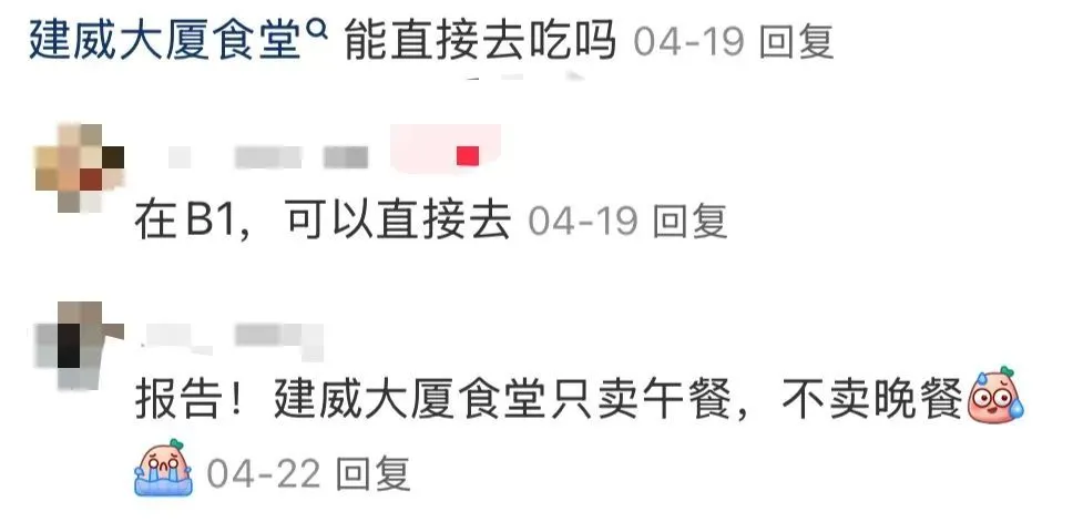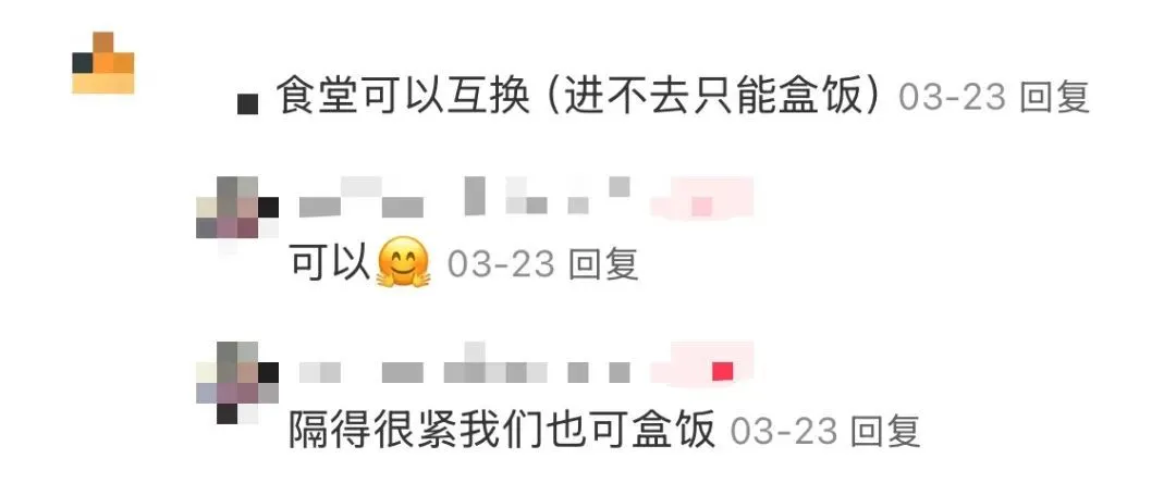 帖子底下大家除了在補充哪家食堂的某品類量大好吃之外,就是在關心外部人員能不能直接進去吃、有沒有晚餐。