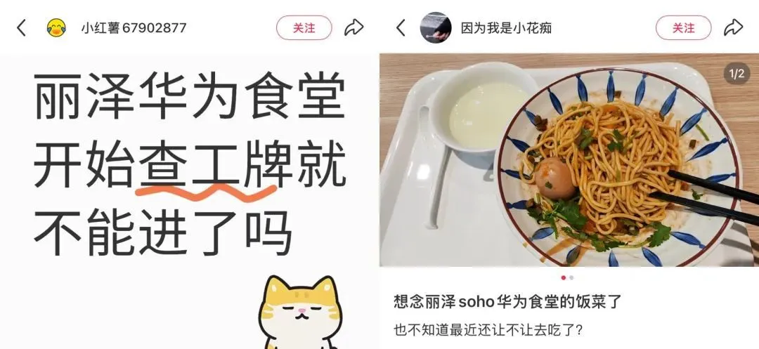 而北京的華為食堂需要憑工牌進入後,也成為了麗澤商務區不少打工人那得不到但永遠在騷動的白月光。