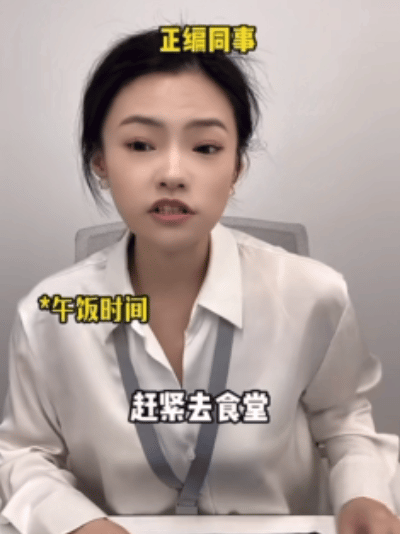 比如食堂標配盒裝酸奶和水果的,那大概率是體制內,環境一般比較寬敞亮堂,周圍用餐的很多穿白色、淺藍色襯衫。