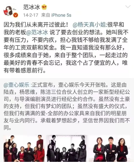 楊天真想單幹,成立壹心,范冰冰也會支持她。