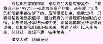 劉曉慶出事時,鄧萃雯曾手寫了幾千字的長文,將自己的傷疤揭露,希望能給劉曉慶重頭再來的勇氣和信心。