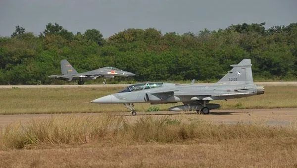 其一是泰國皇家空軍使用JAS-39戰鬥機,已經用出經驗來了。相比連中距攔射能力都不具備的F-16A/B Block15型,JAS-39C/D型戰鬥機最起碼具備比較可靠的中距攔射能力,可以攜帶AIM-120C5型空對空導彈。